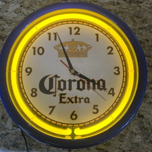 Corona Extra Beer 12" Neon Clock Yellow NEON Man Cave Bar Beer Sign Cord Tested