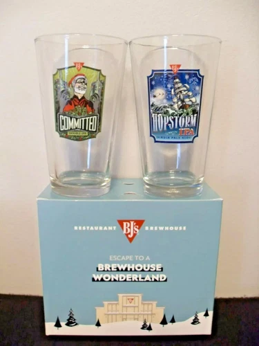 BJ's Brewhouse Wonderland 2023 Pint Glasses Committed/Hopstorm NIB
