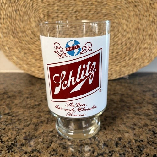 Vintage 70's Retro Schlitz Beer Large Drinking Glass Goblet Carafe 7'' Tall