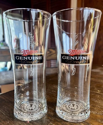 PAIR OF 2 12 oz Frederick Miller Genuine Draft Signature Beer Glass (NICE!)