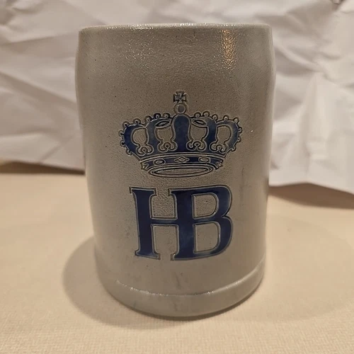 HB Hofbrauhaus Munchen .5l Gray/Blue Salt Glaze Stoneware Beer Mug Stein 5”T