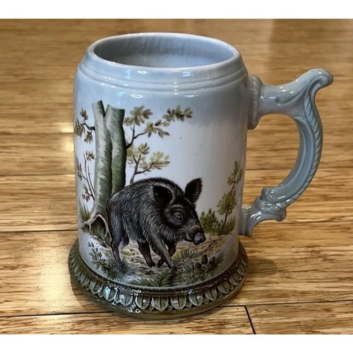 VTG Dresden Porcelain Stein Tankard Mug Hunting Boar Deer Germany 5.5”