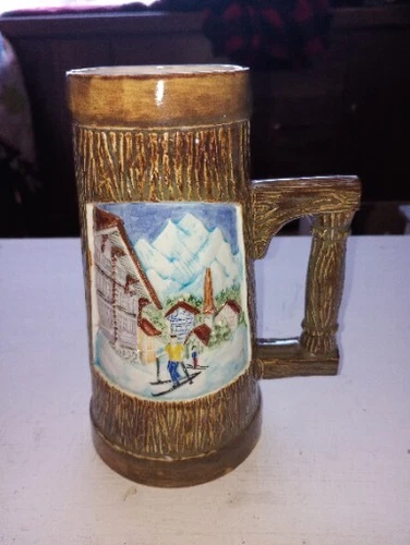 Vintage Beer Stein Winter Mountain Ski Lodge W/Skiers & Other Lodges