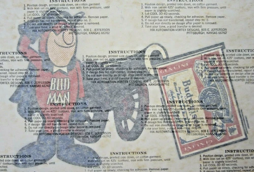 Vintage Budweiser T-Shirt Iron On Advertising Bud Man Patriotic Cannon 1970's