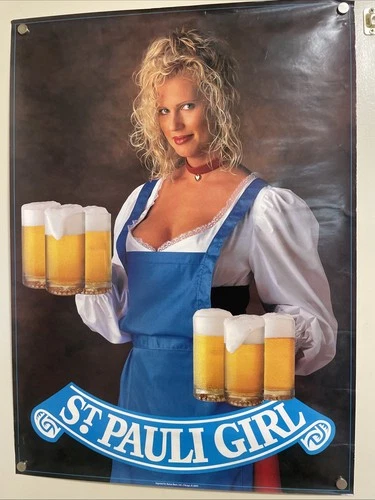 VINTAGE 90’s ST. PAULI GIRL Beer Poster Man Cave Den Garage Pin Up 20x27 Blond