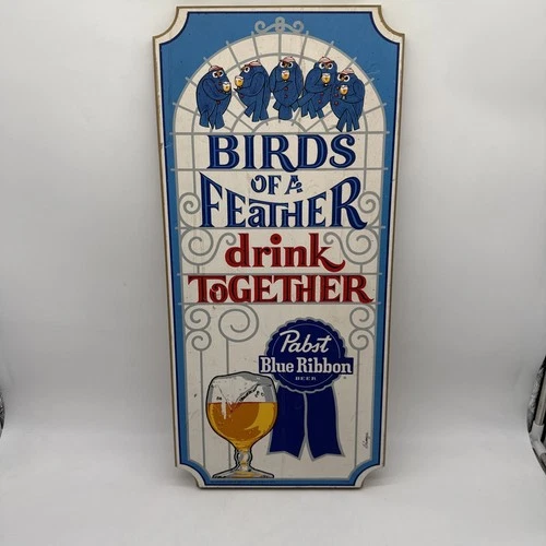 Vintage Pabst Blue Ribbon Beer Wooden Ad Sign Birds Of A Feather Drink Together