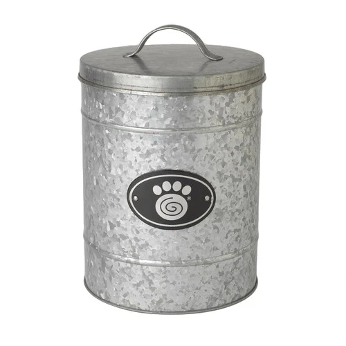 PetRageous 16079 Swirl Paw Galvanized Stainless-Steel Storage Container 6.02-Qua