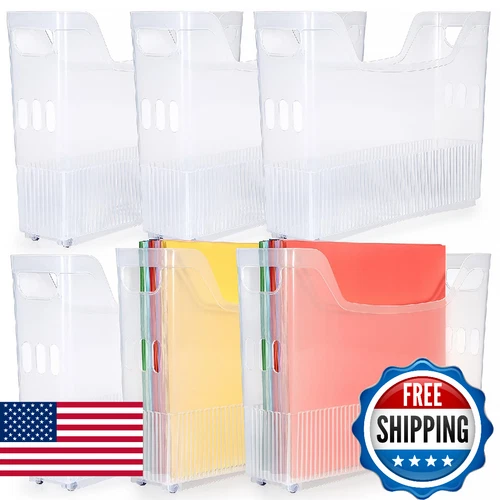 BTSKY 6-Pack 12x12 Scrapbook Paper Storage Box w/ Wheels Plastic Organizer