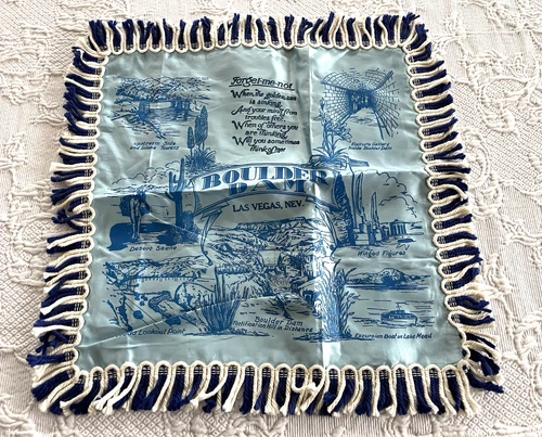 Vintage Pillow Cover Boulder Dam Las Vegas NV and other sites Forget Me Not Poem