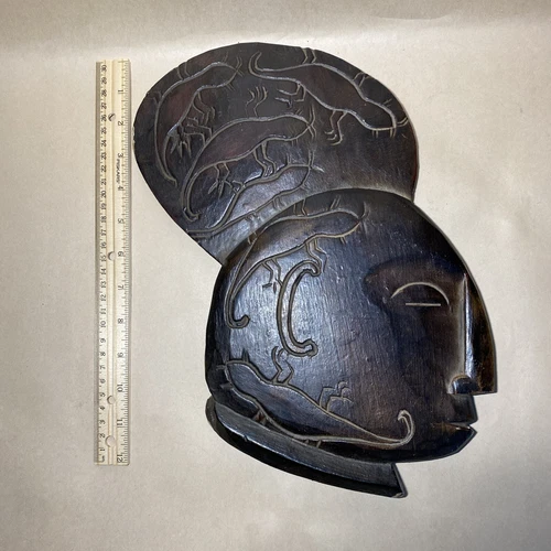 Vintage Wooden Tribal Hand Carved Dark Brown Wood Wall Decor Art Retro Style 13”