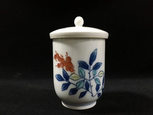 I0890 Japanese Porcelain Tea Cup YUNOMI Vintage SENCHA Lidded Signed NABESHIMA