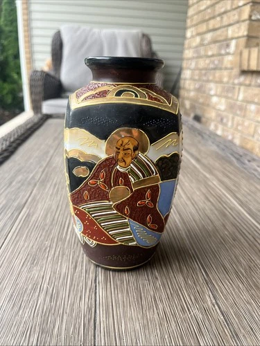 Modern Satsuma Vase 8 inches tall Geisha Scenes Gilded Details.