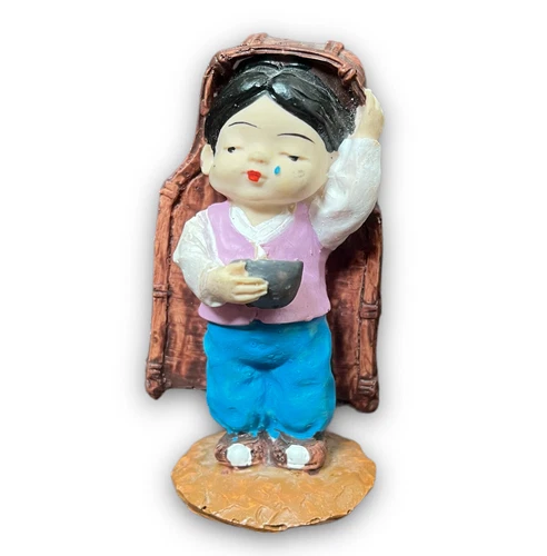 Koreart Figurine Boy with Bowl Tear Drop Traditional Korean Ceramic Figurine VTG