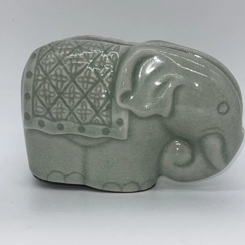 Vintage Chinese Celadon Green Elephant Business Card Note Holder Figurine