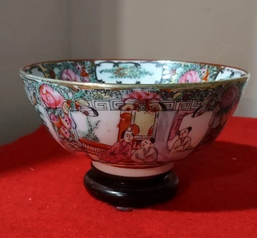 Vintage Rose Medallion Porcelain Bowl: Famille Rose Export Chinoiserie.
