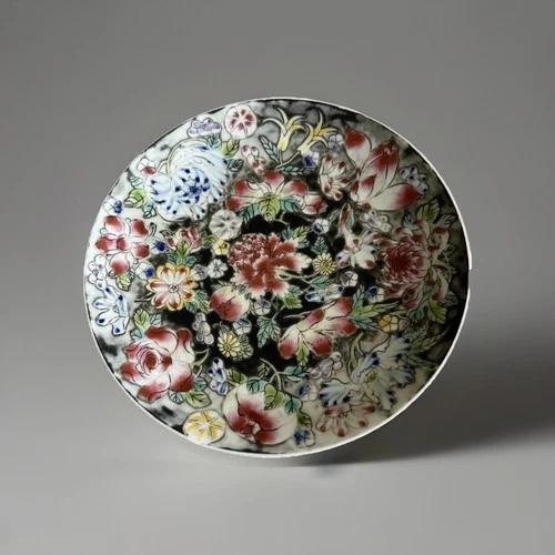 Vintage Famille Noir Millefleurs 5.5” Decorative Plate