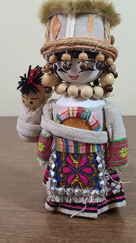 Vintage Handmade Chinese Woman W/Baby 7.5" Ethnic Doll