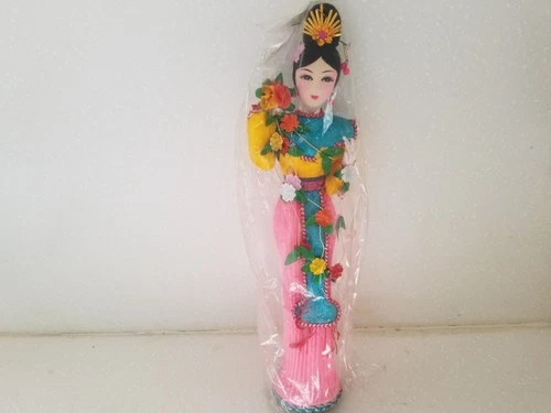 Traditional Chinese Doll 10" on Round Wood Base Hair Pin & Earrings