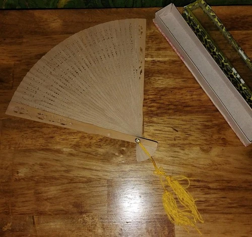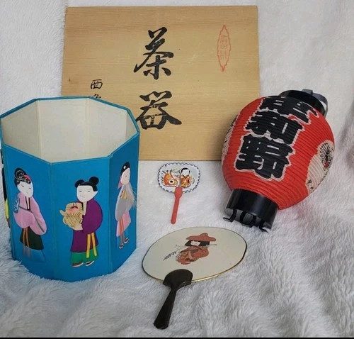 Asian Decorative Lot Paper Lantern 2 Fans Decorative Box Wood Lid Cover