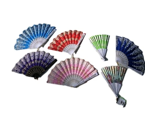 VTG Folding Hand Fans Lot Asian Floral Fabric Plastic Souvenir Fan Decor NOTE
