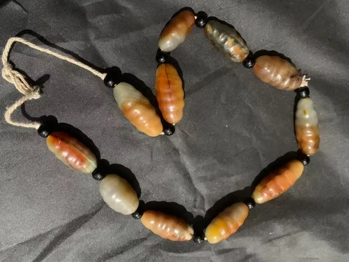 Beautiful Chinese Hetian Old Jade Carved *Ritual* Beads Short Necklace