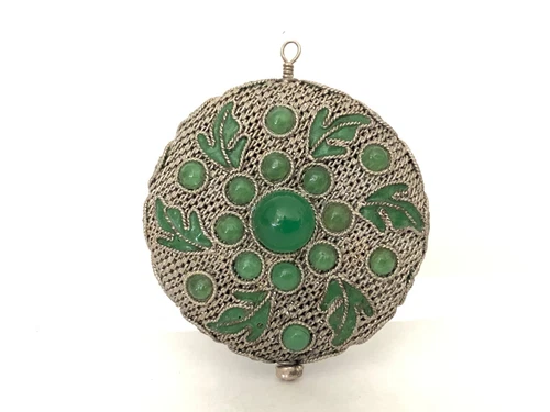 Chinese Enamel Jade Glass Vintage Hand Crafted Woven Silver Pendant 38.9 mm