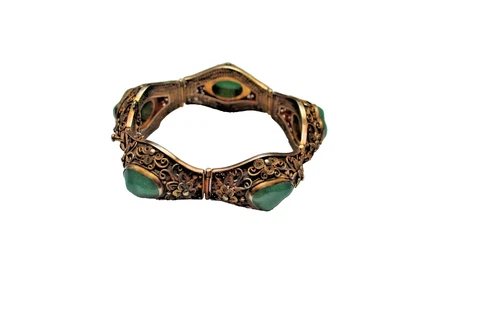 Vintage Chinese Export Gilt Filigree Green Stone Bracelet