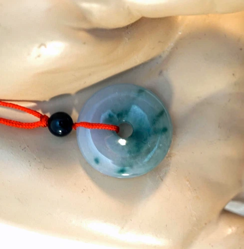 Moss in Snow Jadeite Doughnut Pendant on Cord with Onyx Accent Bead in Gift Box