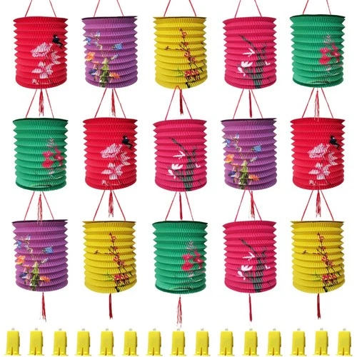 15Pack Chinese Japanese Hanging Paper Lanterns with LED Lights, Colorful...