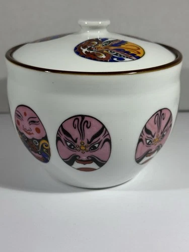 Chinese Porcelain Peking Opera Mask Bowl with Lid. Vintage 60s. Color Symbolism.