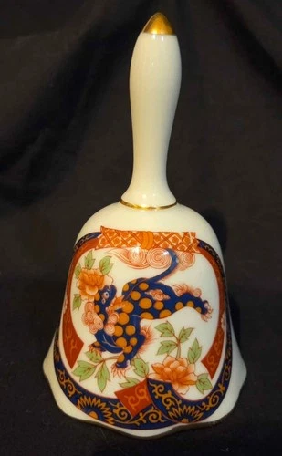 Japanese Porcelain Bell with Lion and Floral Design