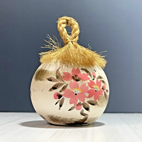 Japanese Pottery Bell Cherry Blossoms Sakura Traditional Craft Vintage Amulet