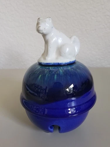 Japanese Dorei Ceramic Bell Akita Inu Year of the Dog Zodiac Blue Unique 4.5"