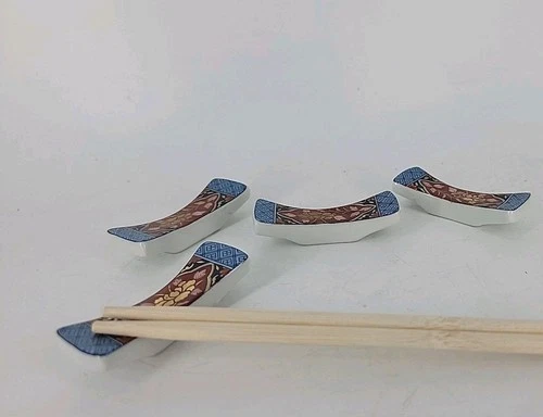 (4) Vtg Made in Japan Porcelain Chopstick Rests Holders Imari Style Hand Painted