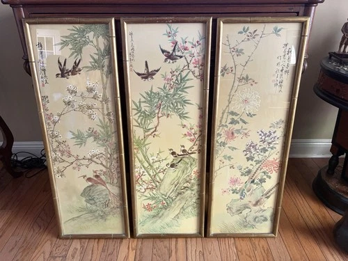 Set of 3 Japanese Bird and Floral Art Framed Prints Wall Decor Paintings