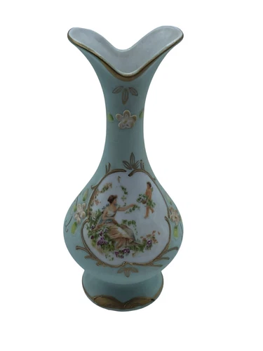 Vintage Blue Japanese Porcelain Vase With Angels Floral
