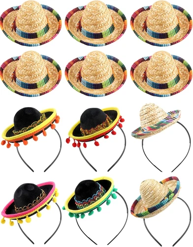 12 Pieces Mexican Sombrero Headbands Mini Sombrero Party Hats for Kids Dogs Pet
