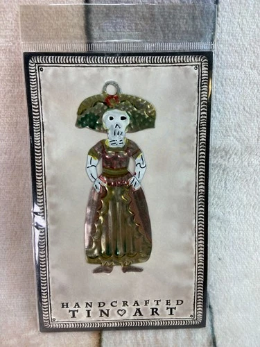 Handcrafted Mexican Tin Catrina Ornament Oaxaca Folk Art Día de los Muertos Dead