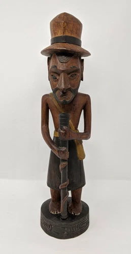 Papua New Guinea Hand Carved Male Wood Figure Mid Century Hat Skirt Stick Solid