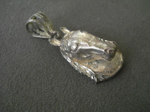 Southwest Chased Sterling Silver Horse Head Pendant Large Bail 1.8" 11g