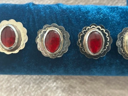 Vintage Western Cross Button Covers Red Cabochon Concho Cowboy Formal Set Of 9