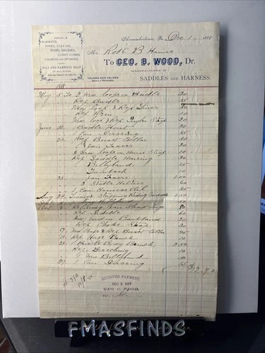 H2 1888 Vintage GEORGE B WOOD Saddles & Harness Billhead Invoice HORSE Tack