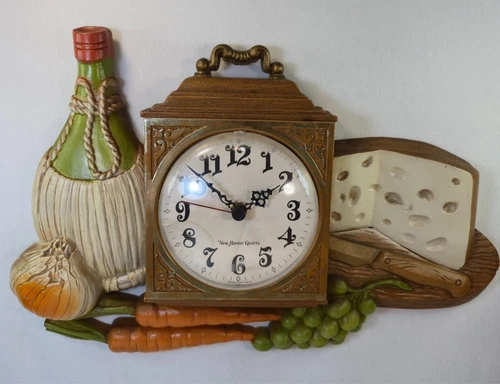 VNTG 1970s Burwood New Haven Cheese Wine Vegetable Kitchen Wall Clock Farm WORKS