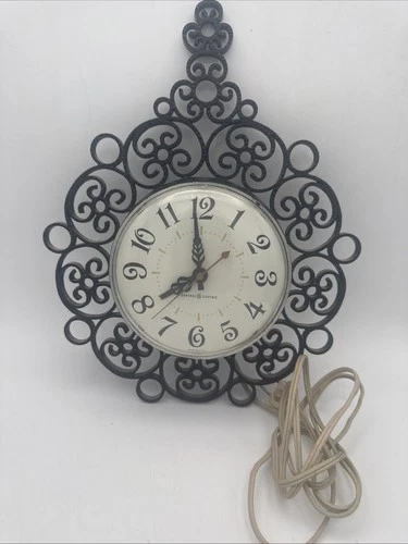 VTG MCM General Electric GE Kitchen Wall Clock Scroll Frame Model 2151 Works