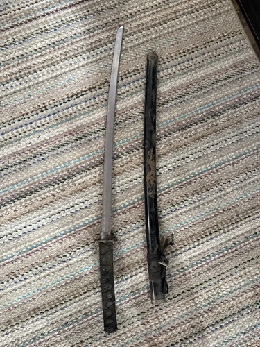Japanese Repro Katana Sword, Cord Wrapped Handle, Dragon Scabbard, Samurai Theme