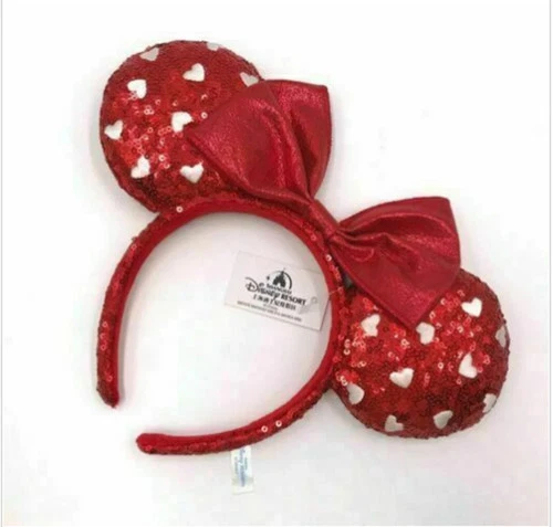 Mickey Mouse Red Heart Sequin Bow Girl 2022 Minnie Ears Disney Parks Headband