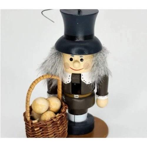 Zim's Wooden 1996 Pilgrim Nutcracker with Basket Holiday Tree Ornament Vintage