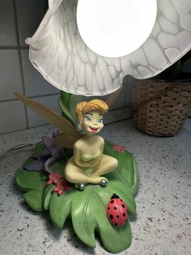 Disney Tinker Bell Fairy Table Lamp Flower Shade Leaf Base Ladybug Vintage