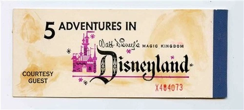 5 Adventures in Disneyland Ticket Book Courtesy Guest 1967