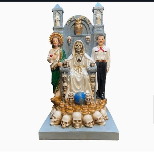 Santa Muerte Sentada En El Trono 12" Con San Judas Y Malverde Skull & Money Base